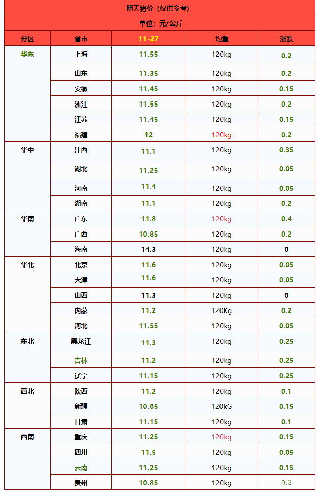 因此,基于供需变化,受屠宰场调价,预计,11月27日,外三元标猪报价在11.43元/公斤,后市关注生猪供需变化,尤其是,集团猪企出栏节奏的变化!